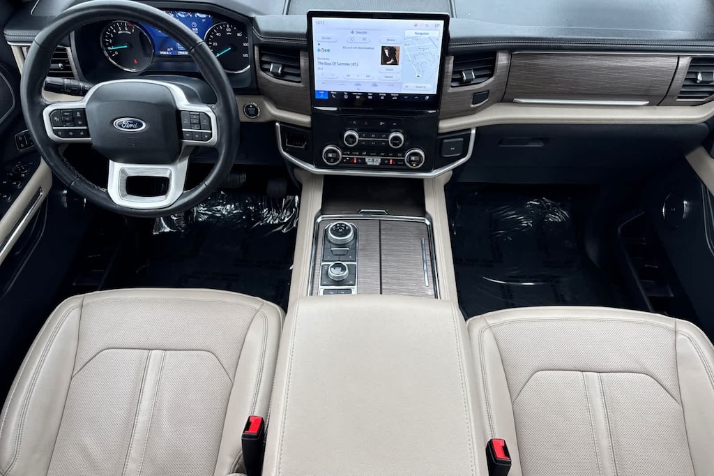 Its a Great Day at Lithia Ford Idaho Falls. Certified. Fresh Oil Change, Certified Pre-Owned Inspection, Interior and Exterior Professionally Detailed for Delivery, Professionally Detailed, Non-Smoker, Certified By Carfax - No Accidents, Certified By Carfax - One Owner, 26mm Engine Radiator, 360-Degree Camera w/Split View, 360-Degree Camera w/Trailer Reverse Guidance, 4-Wheel Disc Brakes, ABS brakes, Adjustable pedals, Air Conditioning, Alloy wheels, Auto High-beam Headlights, Auto-dimming door mirrors, Automatic temperature control, Black Roof-Rail Crossbars, Brake assist, Bumpers: body-color, Delay-off headlights, Ebony Black Mesh Grille, Electronic Stability Control, Equipment Group 302A High Package, Exterior Parking Camera Rear, Front dual zone A/C, Front fog lights, Front Tow Hooks, Fully automatic headlights, Heated & Ventilated Leather Front Captains Chairs, Heated door mirrors, Heated steering wheel, Heavy-Duty Independent Suspension, Heavy-Duty Trailer Tow Package, Integrated Trailer Brake Controller, Leather steering wheel, Magnetic-Painted Power Deployable Running Boards, Memory seat, Navigation system: Connected Navigation, Pedal memory, Power door mirrors, Power driver seat, Power Liftgate, Power moonroof, Power passenger seat, Power steering, Power-Folding Sideview Mirrors w/Autofold, Pro Trailer Backup Assist, Radio: B&O Sound System by Bang & Olufsen, Rain sensing wipers, Rear air conditioning, Rear window defroster, Rear window wiper, Reclining 3rd row seat, Security system, SiriusXM w/360L, Speed control, Speed-sensing steering, Speed-Sensitive Wipers, SYNC 4 w/Enhanced Voice Recognition, Tachometer, Telescoping steering wheel, Tilt steering wheel, Traction control, Variably intermittent wipers, Ventilated front seats, Wheels: 22 12-Spoke Polished Aluminum. Odometer is 1470 miles below market average! CARFAX One-Owner. Clean CARFAX.