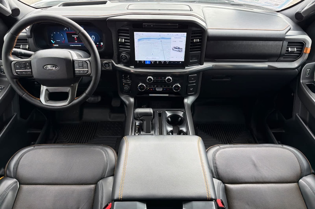 Its a Great Day at Lithia Ford Idaho Falls. Certified. Fresh Oil Change, Certified Pre-Owned Inspection, Maintenance Performed, Interior and Exterior Professionally Detailed for Delivery, Professionally Detailed, Non-Smoker, Certified By Carfax - No Accidents, 4WD, 2nd Row Heated Seats, 4 Pickup Box Tie-Down Plates, 4-Wheel Disc Brakes, ABS brakes, Active Cruise Control, Adjustable pedals, Air Conditioning, Alloy wheels, Ambient Lighting, Auto High-beam Headlights, Auto-dimming door mirrors, Auto-Dimming Rear-View Mirror, Automatic temperature control, Bed Utility Package, Brake assist, Bumpers: body-color, Delay-off headlights, Electronic Stability Control, Equipment Group 402A High, Front Axle w/Torsen Differential, Front Center Armrest, Front dual zone A/C, Front fog lights, Fully automatic headlights, GVWR: 7,100 lbs Payload Package, Heads-Up Display, Heated door mirrors, Heated front seats, Heated Steering Wheel, LED Box Lighting, LED Taillamps, Media Bin Door, Mobile Office Package, Modular Front Bumper & Carbon Black Rear Bumper, Navigation System, Navigation system: Connected Navigation, Power door mirrors, Power driver seat, Power Glass Heated Sideview Mirrors, Power passenger seat, Power steering, Power Tailgate, Power windows, Power-Adjustable Pedals w/Memory, Premium Wrapped Steering Wheel, Radio: B&O Unleashed Sound System by Bang & Olufsen, Rain-Sensing Wipers, Rear step bumper, Rear window defroster, Remote keyless entry, Security system, Speed control, Steering wheel mounted audio controls, SYNC 4 w/Enhanced Voice Recognition, Tachometer, Telescoping steering wheel, Tilt steering wheel, Tow/Haul Package, Traction control, Two-Speed Automatic AWD w/Mechanical Locking 4WD, Unique Sport Cloth 40/Console/40 Power Front Seat, Unique Tremor Leather-Trimmed Bucket Seats, Universal Garage Door Opener, Variably intermittent wipers. Clean CARFAX.