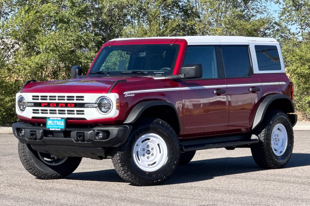 Its a Great Day at Lithia Ford Idaho Falls. 2025 Ruby Red Metallic Tinted Clearcoat Ford Bronco Heritage Edition 4WD 10-Speed Automatic 2.7L EcoBoost V6
