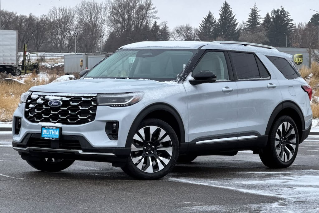 Its a Great Day at Lithia Ford Idaho Falls. 2026 Space White Metallic Ford Explorer Platinum 4WD. 20/27 City/Highway MPG 4WD 10-Speed Automatic 2.3L EcoBoost I-4
